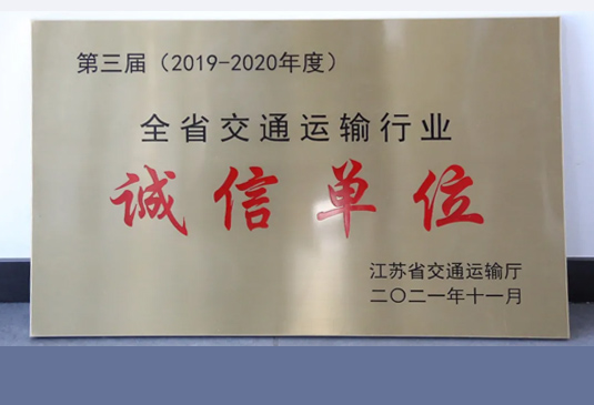 2021年獲第三屆(2019-2020年度)江蘇省交通運輸行業“誠信單位”稱號