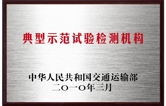 2010年被交通運輸部授予“典型示范試驗檢測機構”稱號(全國兩家之一)